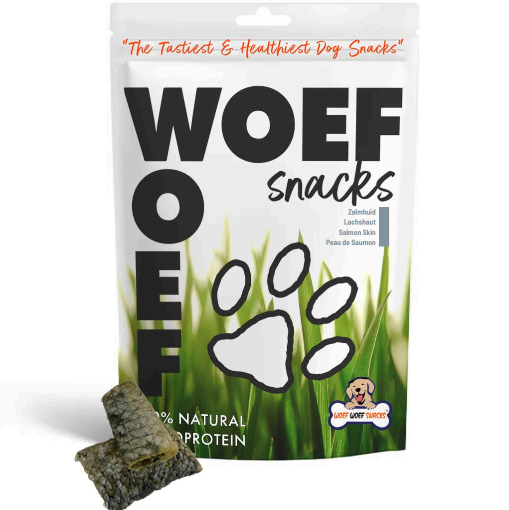 Zalmhuid is een heerlijke, gezonde snack voor tussendoor. Geef het met mate en beschouw het als aanvulling op de dagelijkse voeding.